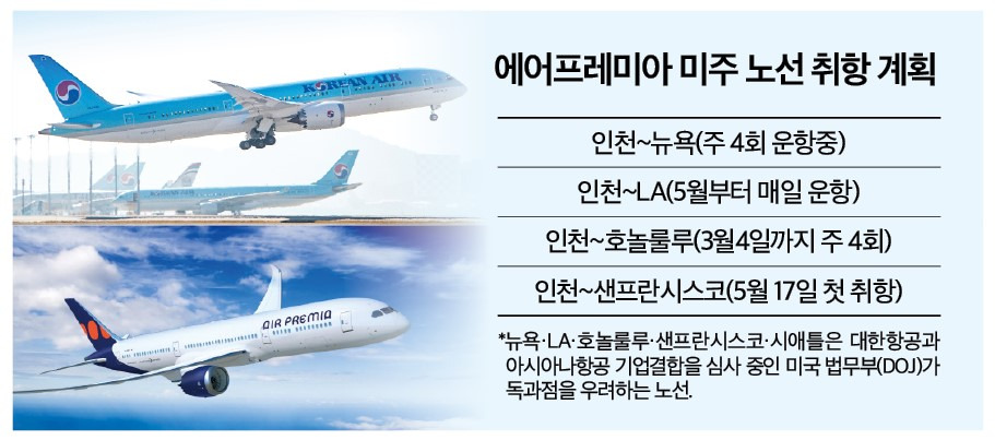 에어프레미아, 항공기부족을 대한항공 전세기 임대하여 미주노선 투입하고, 독과점 문제 해소 급한 대한항공은 이를 통해 독점 낮춰?.. 양 항공사 윈윈 전략