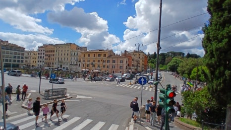 수많은 자동차와 관광객이 뒤섞인 이 광장은, 한때 통일 이탈리아의 영웅을 기리기 위해 세워진 장소입니다.
