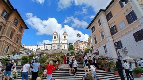 계단은 스페인 대사관에서 윗쪽으로 올라가며, 트레비 분수와 함께 로마에서 인기 있는 관광 명소 중 하나로 손꼽힙니다. 스페인 계단은 138개의 계단으로 구성되어 있으며, 본래 스페인 국가를 기리기 위해 건설되었습니다. 계단은 특히 저녁에 야경을 보기위해 사람들이 많이 찾는 곳입니다. 계단을 올라가면 로마의 야경을 한눈에 담을 수 있어요